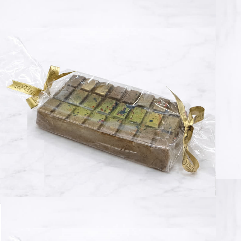 Tabliczka czekolady odlewana z najwyższej jakości czekolady w różnych wariantach. Nadziewana ciastem kataifi i pistacją